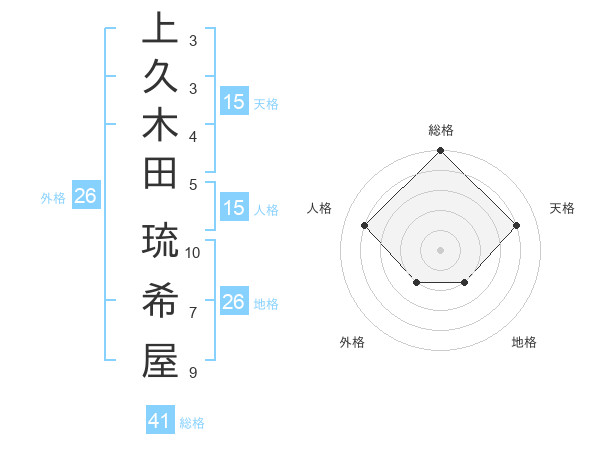 上久木田 琉希屋さんを姓名の画数から五運を鑑定