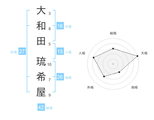 大和田 琉希屋さんを姓名の画数から五運を鑑定
