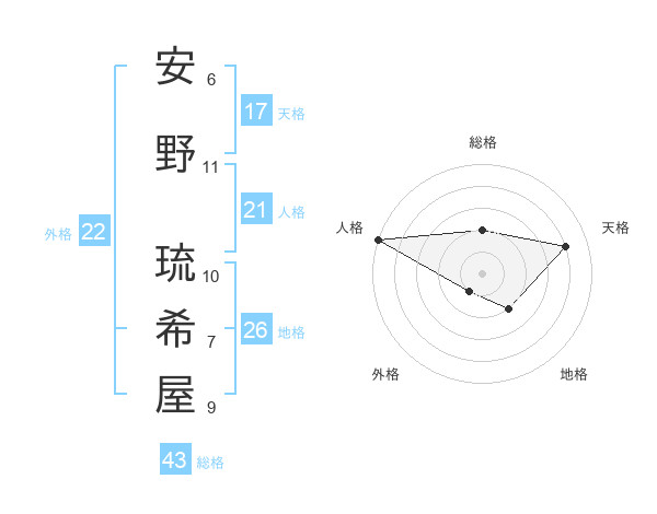 安野 琉希屋さんを姓名の画数から五運を鑑定