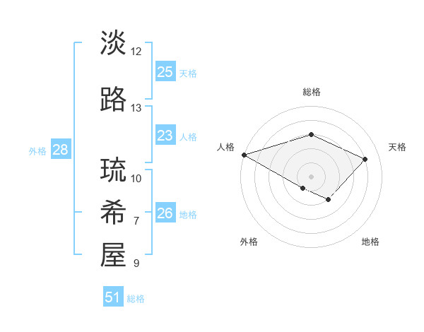 淡路 琉希屋さんの総格は51画の3点!