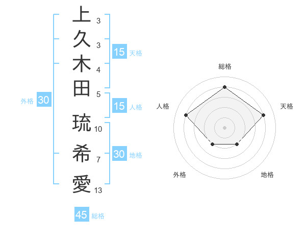 上久木田 琉希愛さんを姓名の画数から五運を鑑定