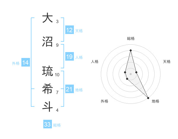 大沼 琉希斗さんを姓名の画数から五運を鑑定