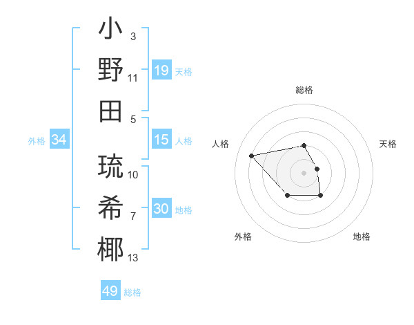 小野田 琉希椰さんを姓名の画数から五運を鑑定