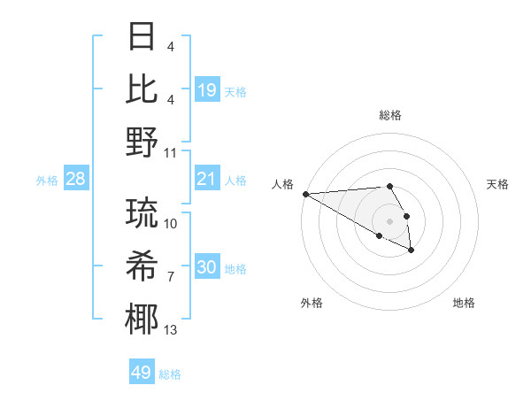 日比野 琉希椰さんを姓名の画数から五運を鑑定