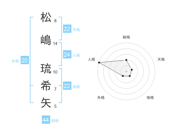 松嶋 琉希矢さんを姓名の画数から五運を鑑定