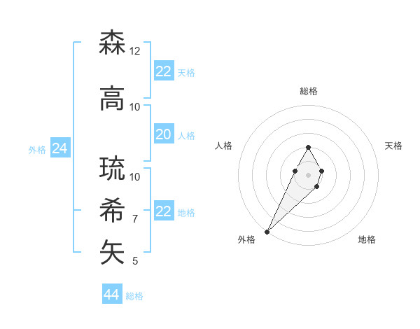 森高 琉希矢さんを姓名の画数から五運を鑑定