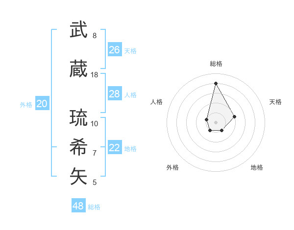 武蔵 琉希矢さんを姓名の画数から五運を鑑定