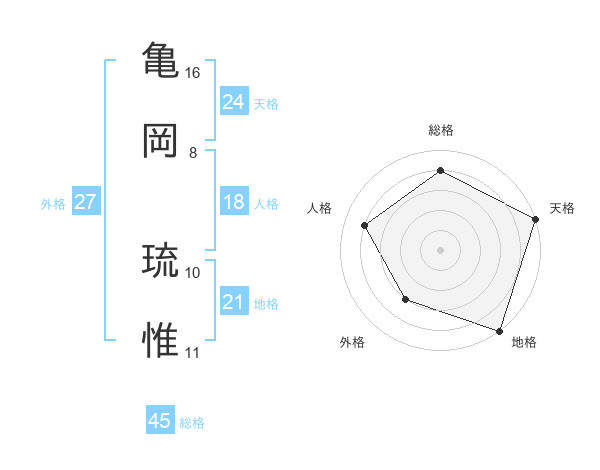 亀岡 琉惟さんの天格は24画の5点!