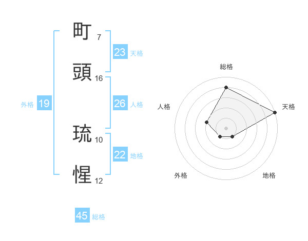 町頭 琉惺さんの総格は45画の4点!