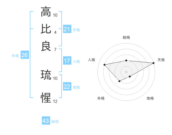 高比良 琉惺さんの天格は21画の5点!