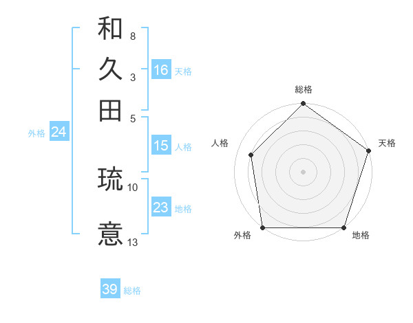 和久田 琉意さんを姓名の画数から五運を鑑定