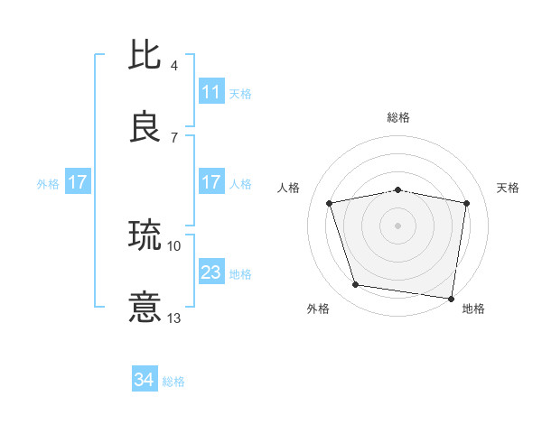 比良 琉意さんの外格は17画の4点!