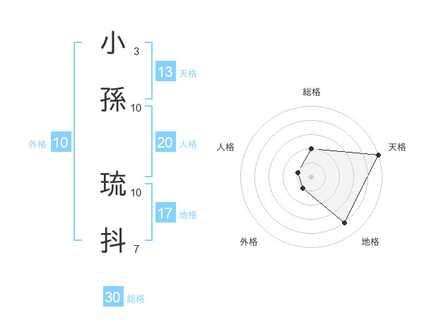 小孫 琉抖さんの総格は30画の2点!