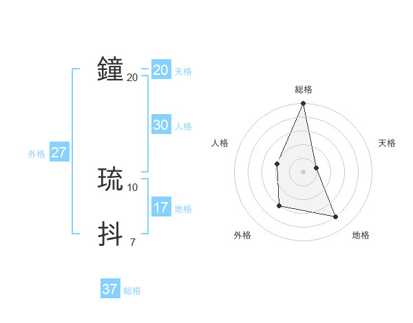 鐘 琉抖さんを姓名の画数から五運を鑑定