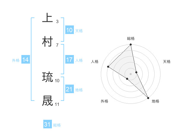 上村 琉晟さんを姓名の画数から五運を鑑定