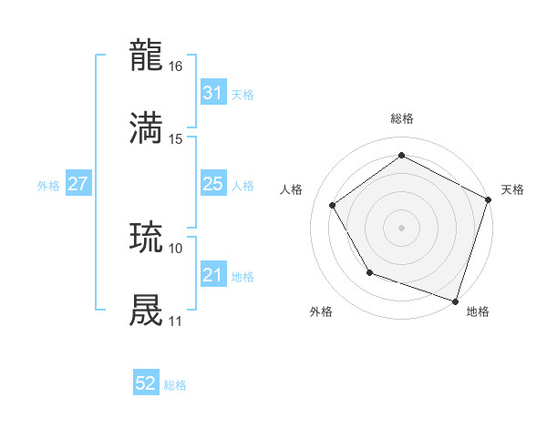龍満 琉晟さんの総格は52画の4点!