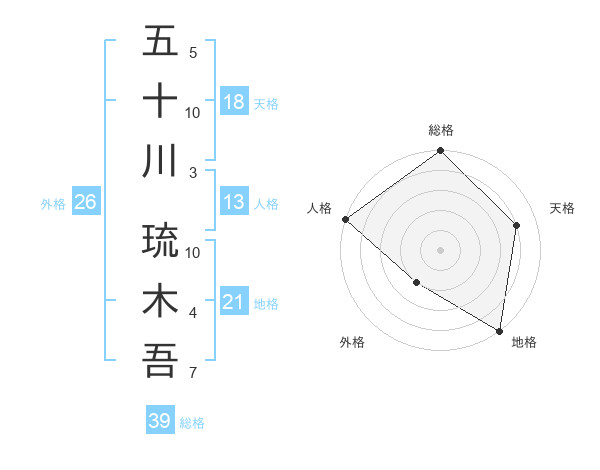 五十川 琉木吾さんを姓名の画数から五運を鑑定