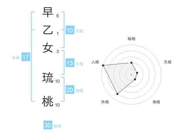 早乙女 琉桃さんを姓名の画数から五運を鑑定