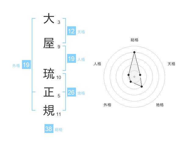 大屋 琉正規さんを姓名の画数から五運を鑑定