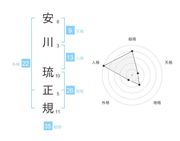 安川 琉正規さんの総格は35画の4点!
