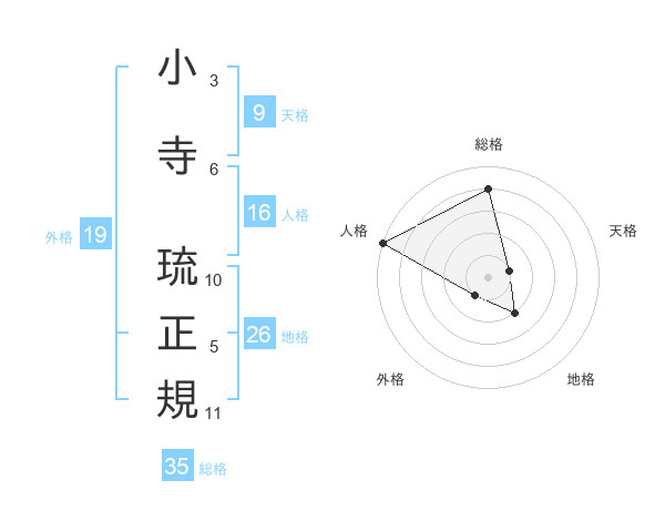 小寺 琉正規さんの総格は35画の4点!