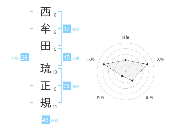 西牟田 琉正規さんを姓名の画数から五運を鑑定