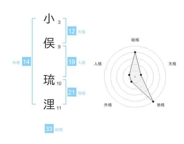 小俣 琉浬さんの天格は12画の1点!