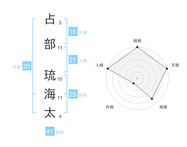 占部 琉海太さんの天格は16画の5点!
