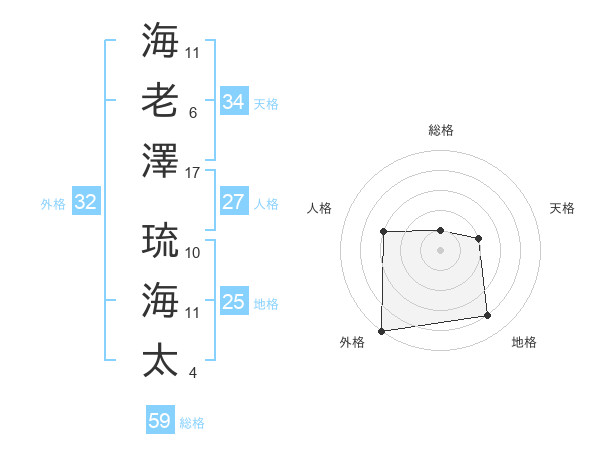 海老澤 琉海太さんの総格は59画の1点!