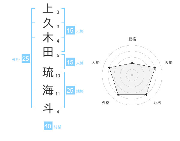上久木田 琉海斗さんの天格は15画の4点!