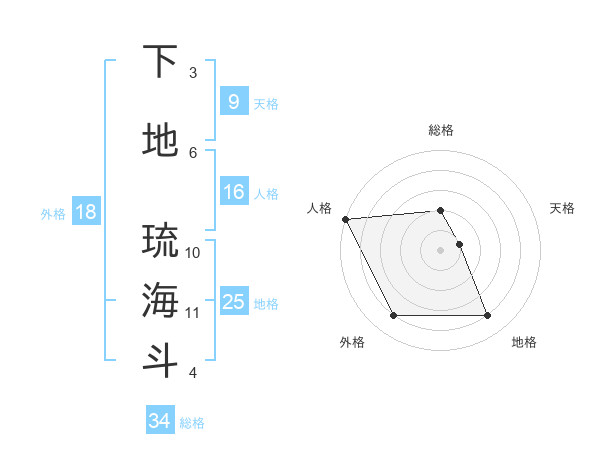 下地 琉海斗さんを姓名の画数から五運を鑑定