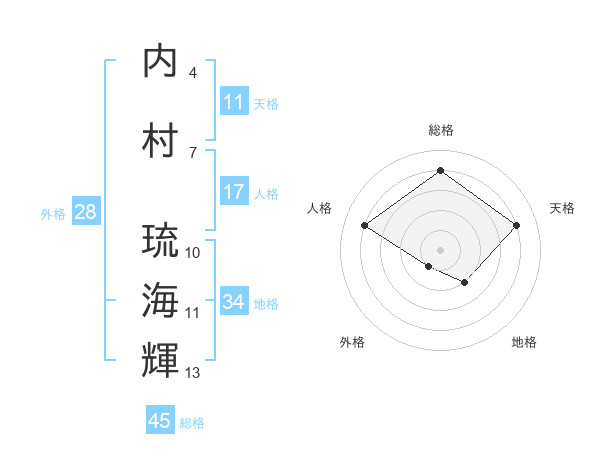内村 琉海輝さんの総格は45画の4点