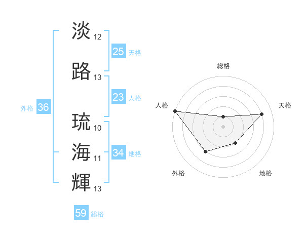 淡路 琉海輝さんを姓名の画数から五運を鑑定