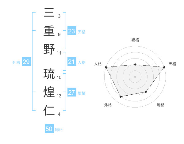 三重野 琉煌仁さんを姓名の画数から五運を鑑定