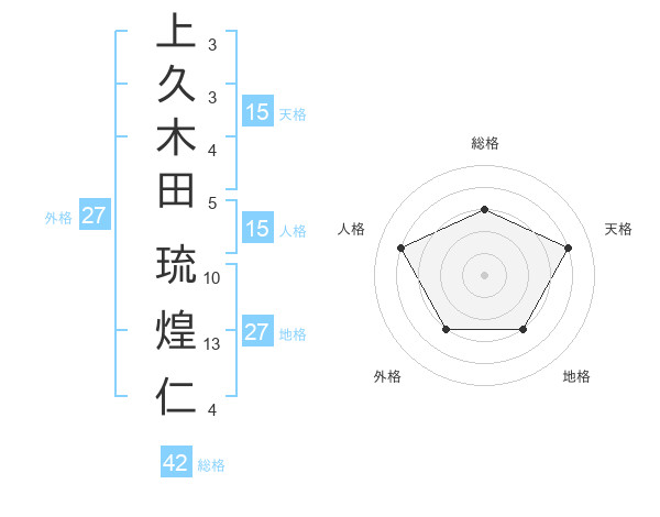 上久木田 琉煌仁さんを姓名の画数から五運を鑑定