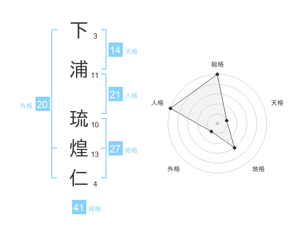 下浦 琉煌仁さんの天格は14画の1点!