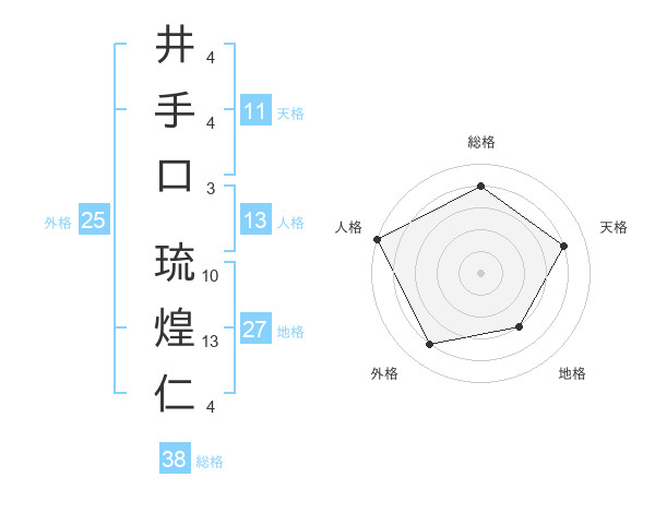井手口 琉煌仁さんを姓名の画数から五運を鑑定