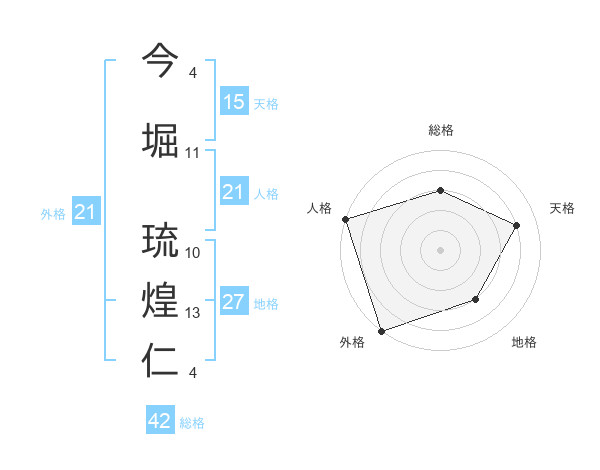 今堀 琉煌仁さんを姓名の画数から五運を鑑定