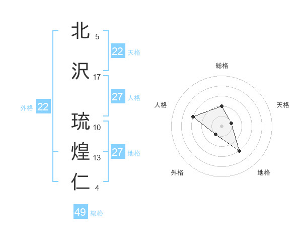 北沢 琉煌仁さんを姓名の画数から五運を鑑定