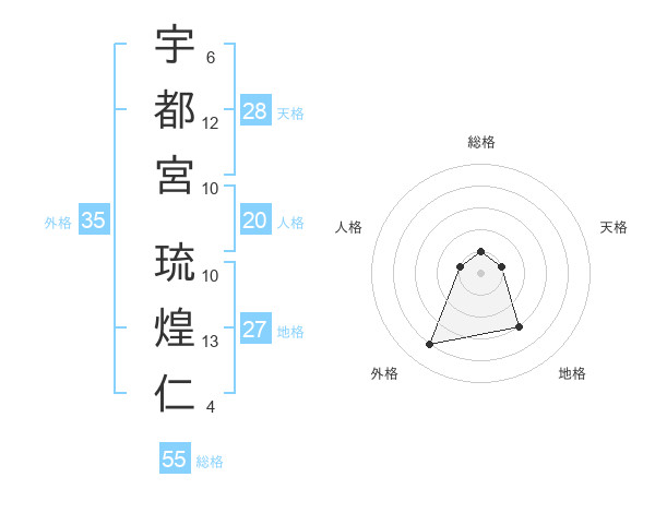 宇都宮 琉煌仁さんの総格は55画の1点!