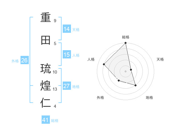 重田 琉煌仁さんを姓名の画数から五運を鑑定