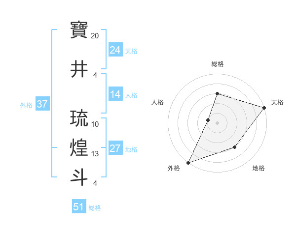 寶井 琉煌斗さんを姓名の画数から五運を鑑定