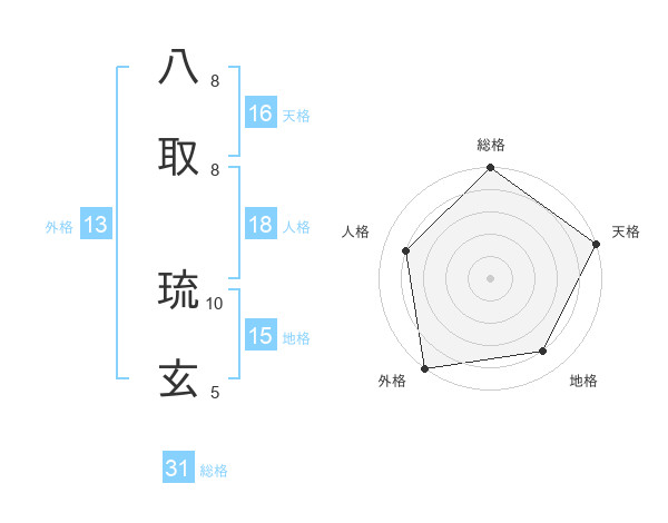八取 琉玄さんの外格は13画の5点!