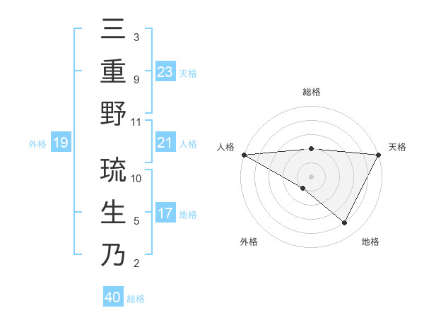 三重野 琉生乃さんを姓名の画数から五運を鑑定