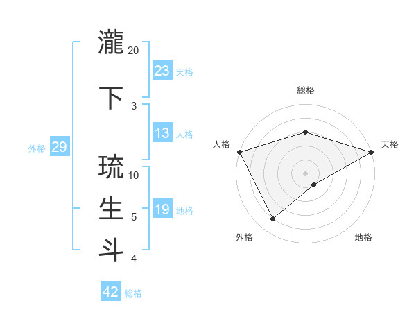 瀧下 琉生斗さんを姓名の画数から五運を鑑定