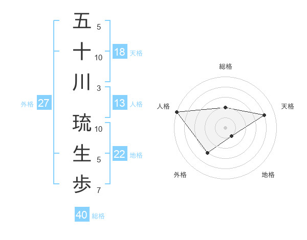 五十川 琉生歩さんを姓名の画数から五運を鑑定