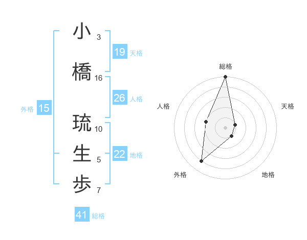 小橋 琉生歩さんを姓名の画数から五運を鑑定