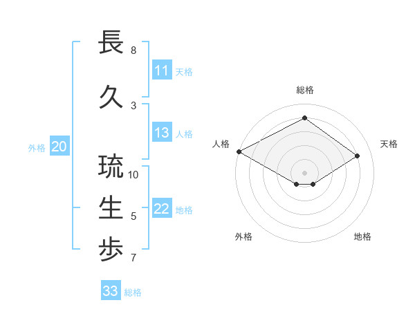 長久 琉生歩さんを姓名の画数から五運を鑑定