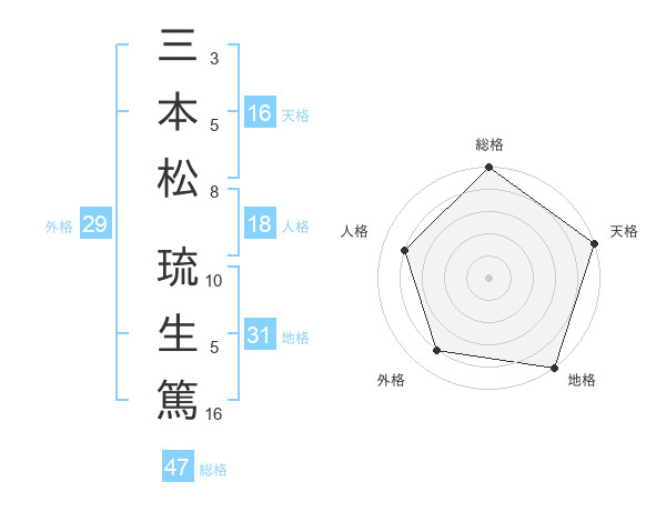 三本松 琉生篤さんの総格は47画の5点!