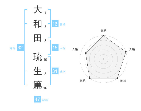 大和田 琉生篤さんの総格は47画の5点!